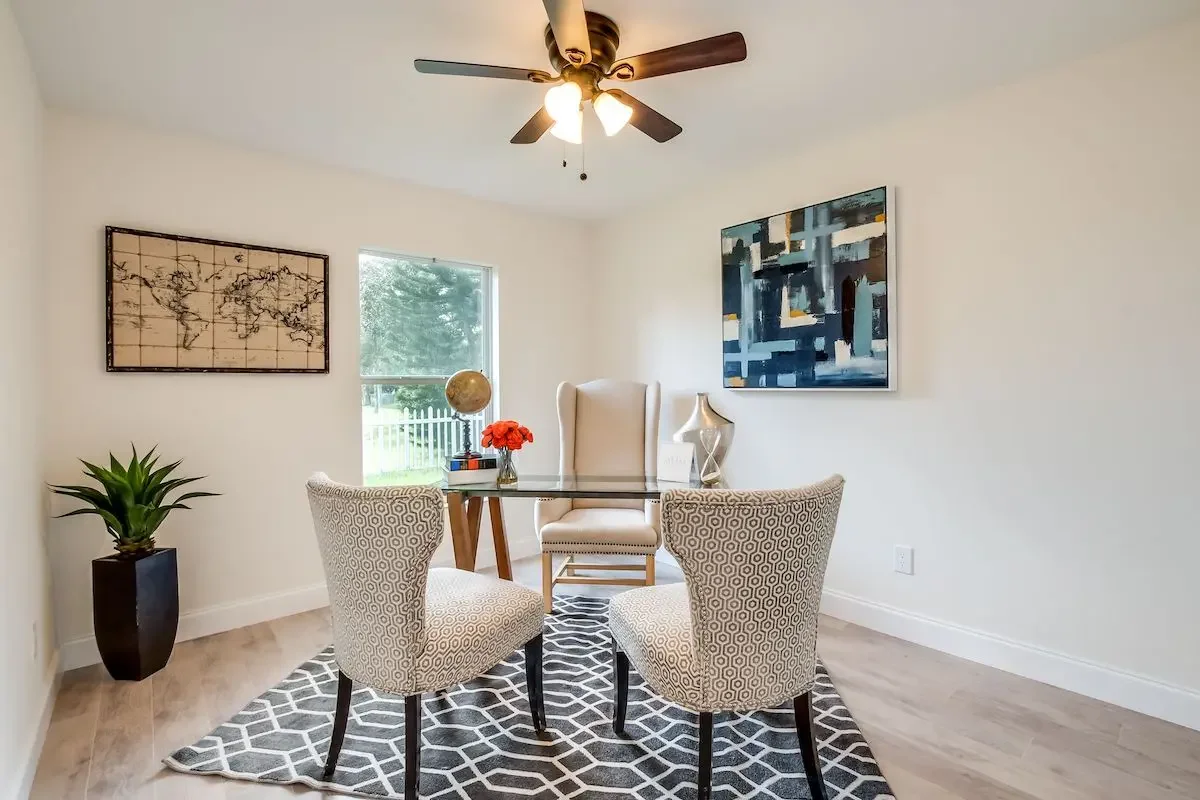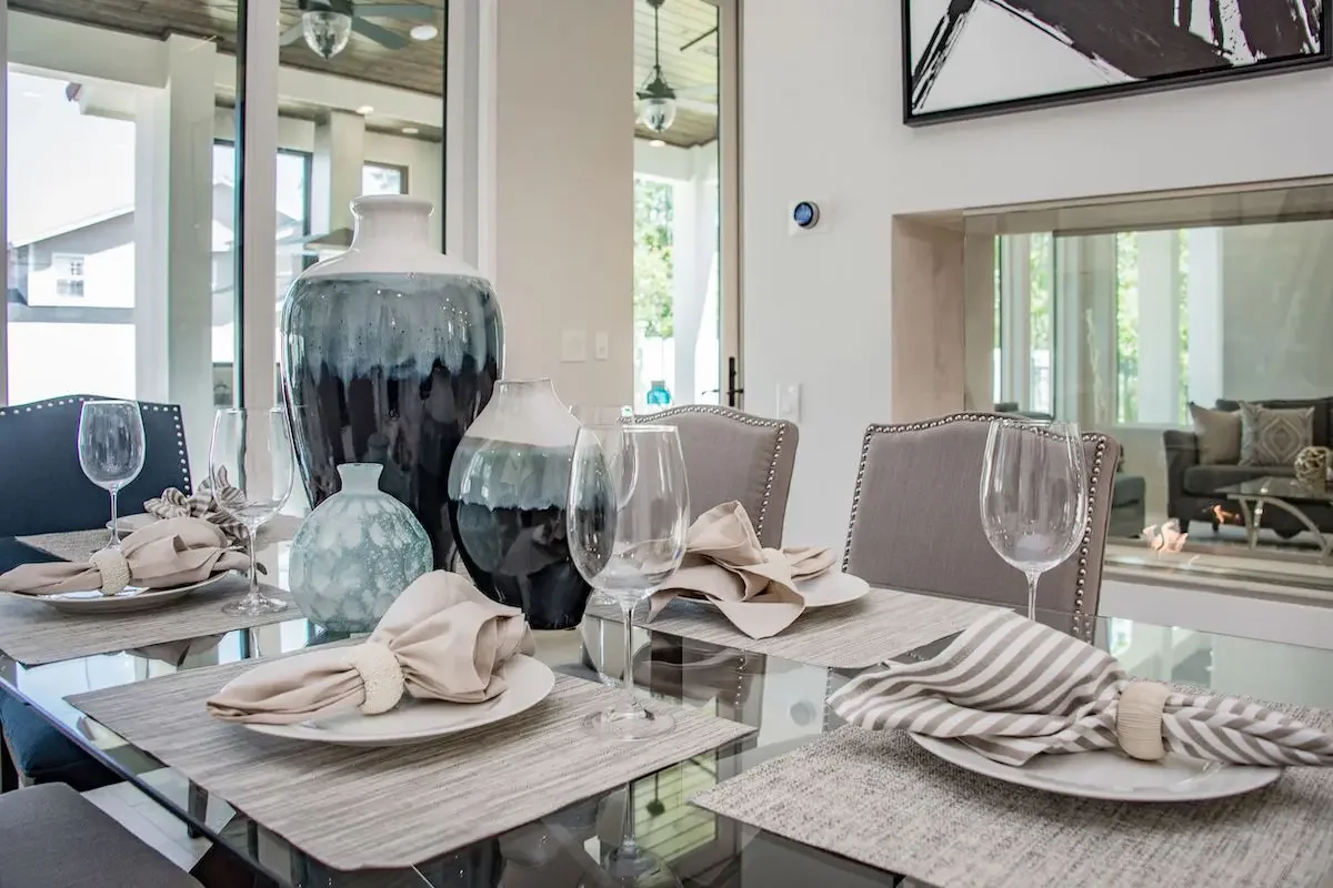 With hosting guests at home becoming increasingly popular, staging spaces to reflect this lifestyle is essential. Highlight dining areas by setting a simple but elegant tablescape, complete with placemats, stylish dinnerware, and a centerpiece. In living areas, arrange furniture to encourage conversation and relaxation, including plenty of seating options.